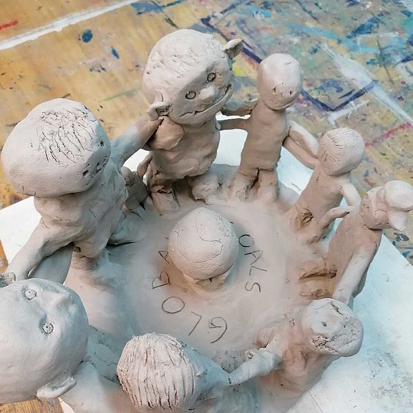 mit Knete oder Ton modelliert, aus Recycling- oder Naturmaterial.